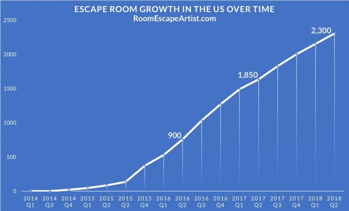 According to a study by Room Escape Artist, Escape Rooms went from around two dozen 5 years ago to over 2,000 in 2018. This upward trend in Escape Room growth is only expected to continue to climb in 2019.